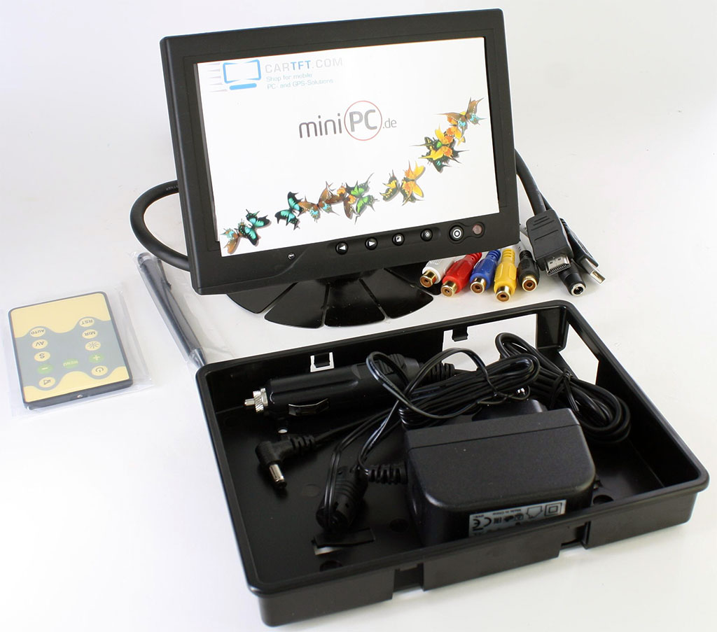 AC-Adapter for home usage and a car cigarette lighter adapter is included as well as the IR-remote-control unit and the extra long (2,5 meters) All-In-One connector cable.